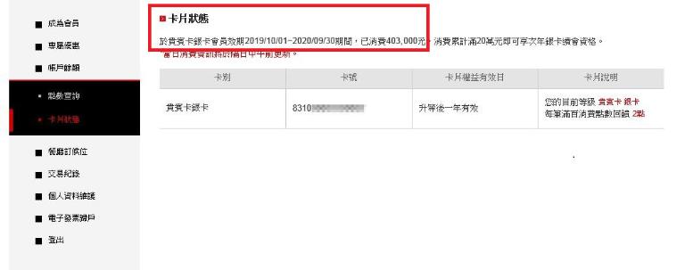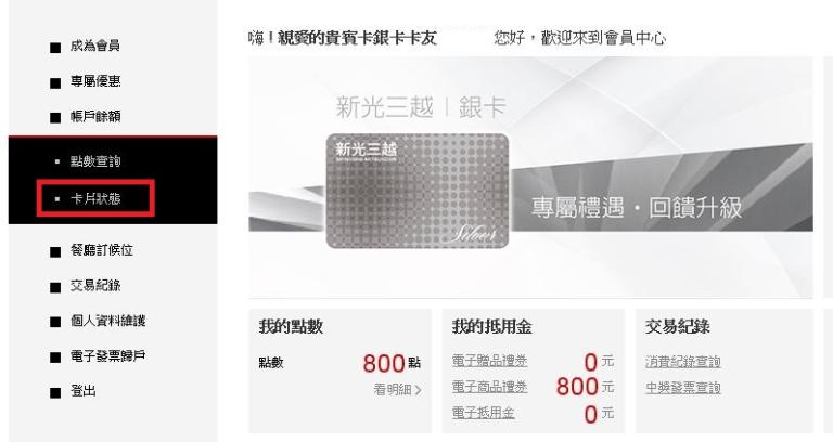Step4. 點選卡片狀態後,於網頁中即可觀看到銀卡會員效期、消費累積金額