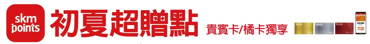 活動期間,持新光三越貴賓卡/金卡/銀卡/橘卡,於當日當店使用指定支付方式單筆消費滿指定金額,即可回饋指定skm points。