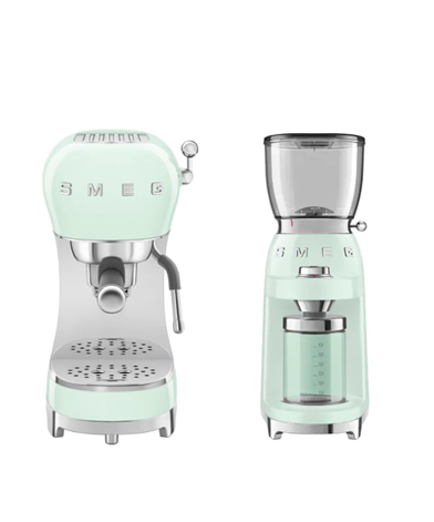 【中港Smeg】半自動義式咖啡機(ECF02)+電動磨豆機(CGF11)-粉綠色|SKM ONLY|