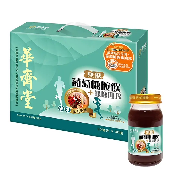 【華齊堂台中店】超級組合-無糖葡萄糖胺龜鹿四珍飲*1盒+新雙效膠原蛋白飲*1盒